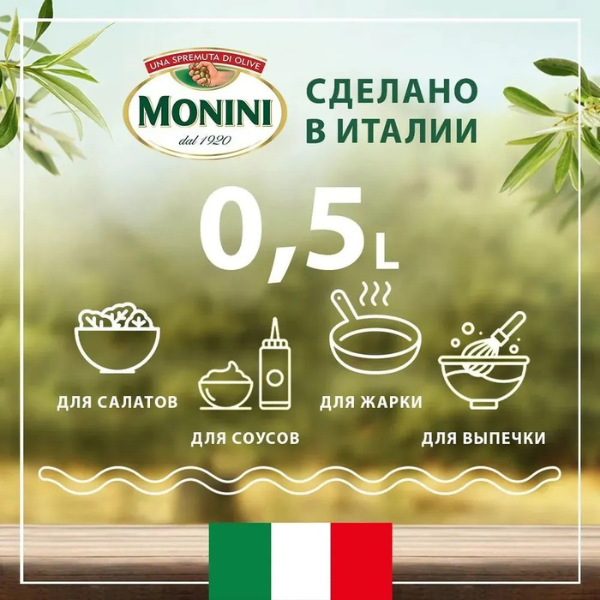 Оливковое масло Monini Delicato Extra Virgin — это высококачественное нерафинированное масло, произведенное из отборных оливок методом холодного отжима. Monini Delicato обладает всеми полезными для здоровья свойствами оливкового масла первого холодного отжима, но имеет более нежный и мягкий вкус. Оно отлично подойдет для тех, кто не привык к характерному резкому (острому, пикантному) вкусу классического оливкового масла Extra Virgin. Идеально подходит для заправки салатов, приготовления соусов, маринадов, запекания мяса, рыбы и овощей. А также прекрасно подходит для выпечки и приготовления десертов.