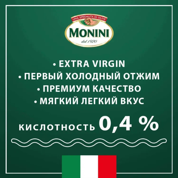 Оливковое масло Monini Delicato Extra Virgin — это высококачественное нерафинированное масло, произведенное из отборных оливок методом холодного отжима. Monini Delicato обладает всеми полезными для здоровья свойствами оливкового масла первого холодного отжима, но имеет более нежный и мягкий вкус. Оно отлично подойдет для тех, кто не привык к характерному резкому (острому, пикантному) вкусу классического оливкового масла Extra Virgin.